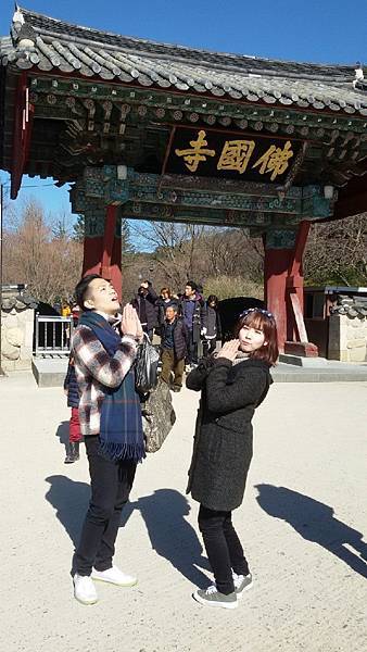 今天要去古都慶州 坐1號線到老圃 轉去慶州的客運 車站內可以買點吃的 甜甜的柿餅 韓國飯捲 大概40分鐘就可以到 遊覽車很乾淨 有觀光巴士, 可以隨意逛 佛國寺(世界文化遺產) 一定要去的 <<免不了拍一白癡照) 聽說摸金豬會帶來好運